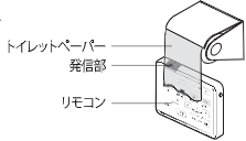 リモコンの発信部にトイレットペーパーや障害物がないか確認してください。以下の図のように障害物があると信号が届かない場合があります。